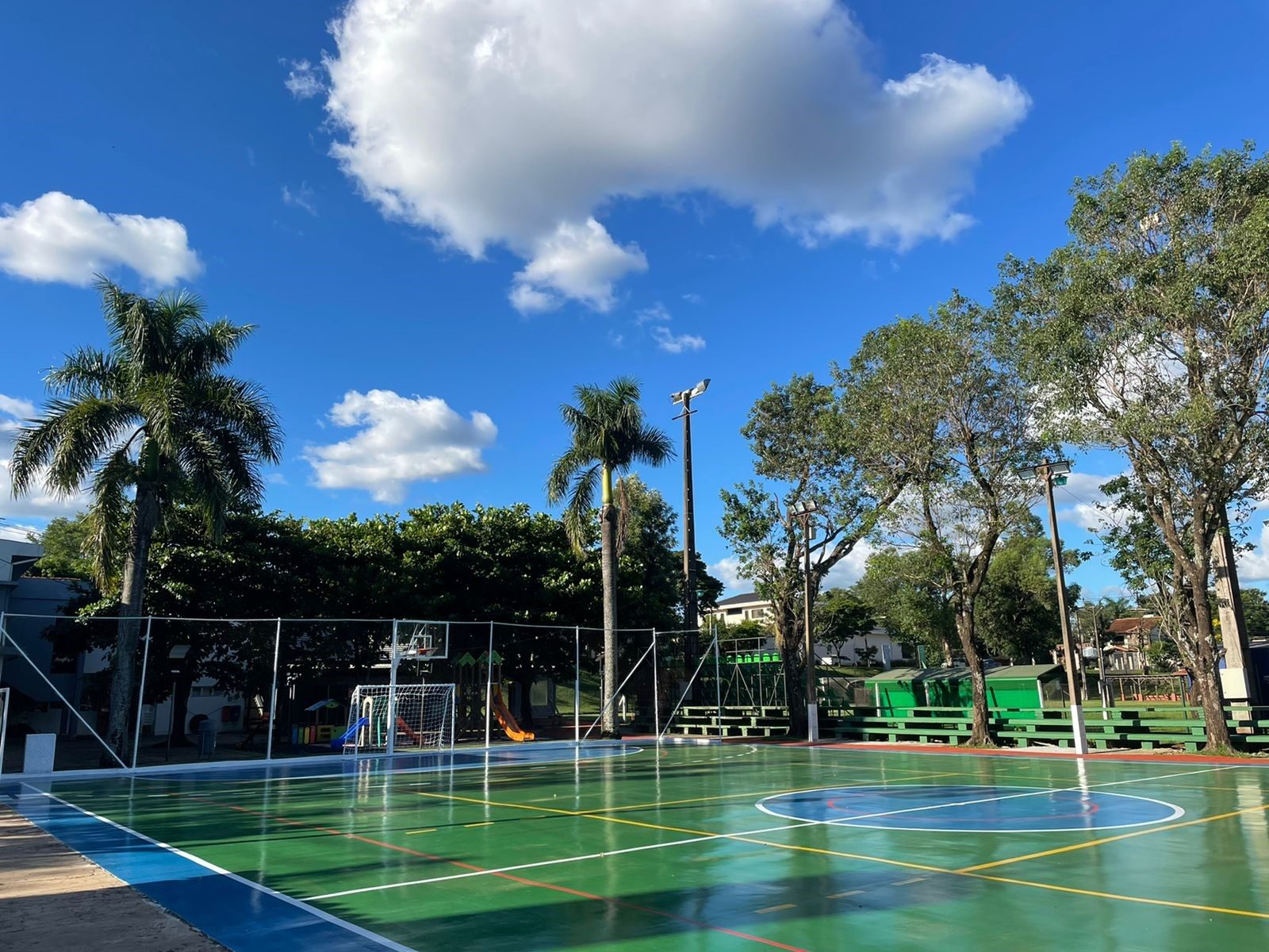 Se implementó todo un sistema impermeabilizante para áreas deportivas monopol PU-25600 ml, Vulken primer 171, Vulken 350 NF, Vulken 345, pintura PU flexible, “un sistema de buena adherencia al concreto y la argamasa, con textura antideslizante, tiene membrana de poliuretano, especialmente para áreas expuestas a la intemperie, con esto no va haber problemas de filtraciones y a los líquidos corrosivos, tiene mucha durabilidad”, explicó el Ing. Rodrigo Orué, secretario de Finanzas.