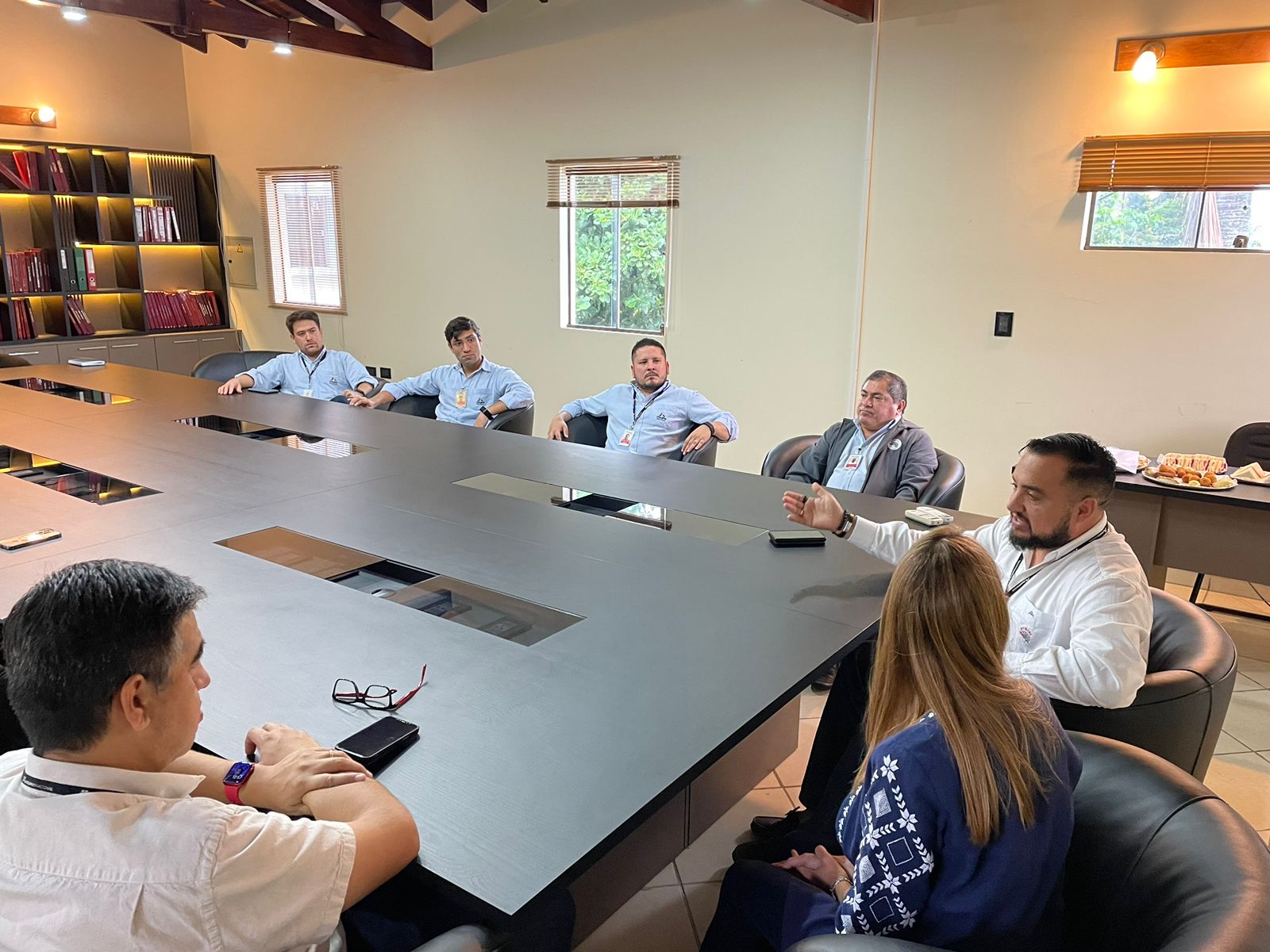Reunión de la Ministra de Trabajo, Empleo y Seguridad Social Abg. Carla Bacigalupo, Ing. Gerardo Soria, Asesor de Responsabilidad Social (Itaipú Binacional), margen derecha y la Junta Directiva del Sindicato de Trabajadores de la Empresa Itaipú Binacional (STEIBI), lado paraguayo.