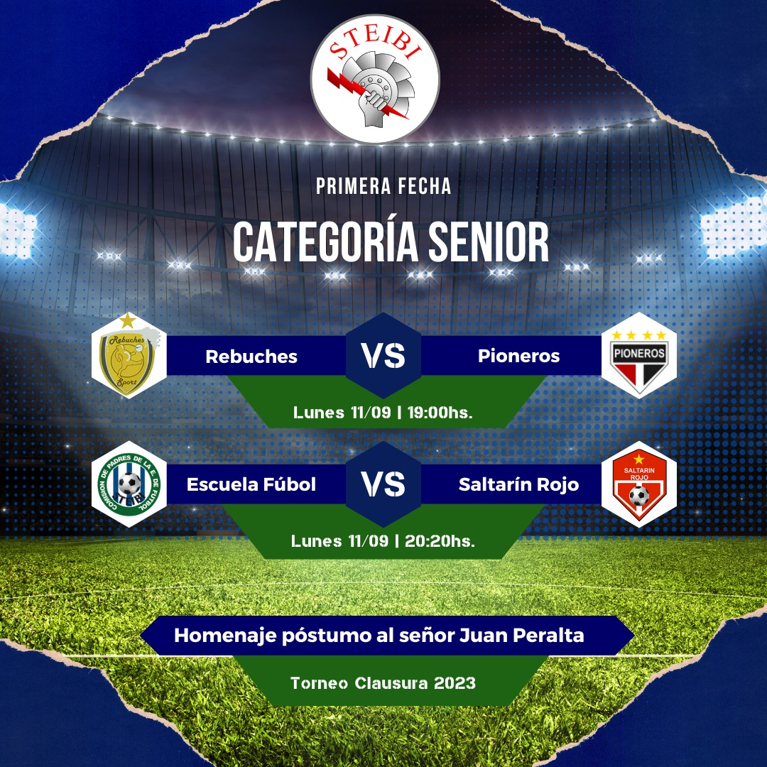 Hoy lunes 11 de setiembre, a partir de las 18:00 hs te invitamos a compartir con nosotros la jornada inaugural del CAMPEONATO CLAUSURA 2023 CATEGORIA SÉNIOR DEL STEIBI. El deporte nos une, te esperamos!!!. Homenaje póstumo al compañero JUAN PERALTA.