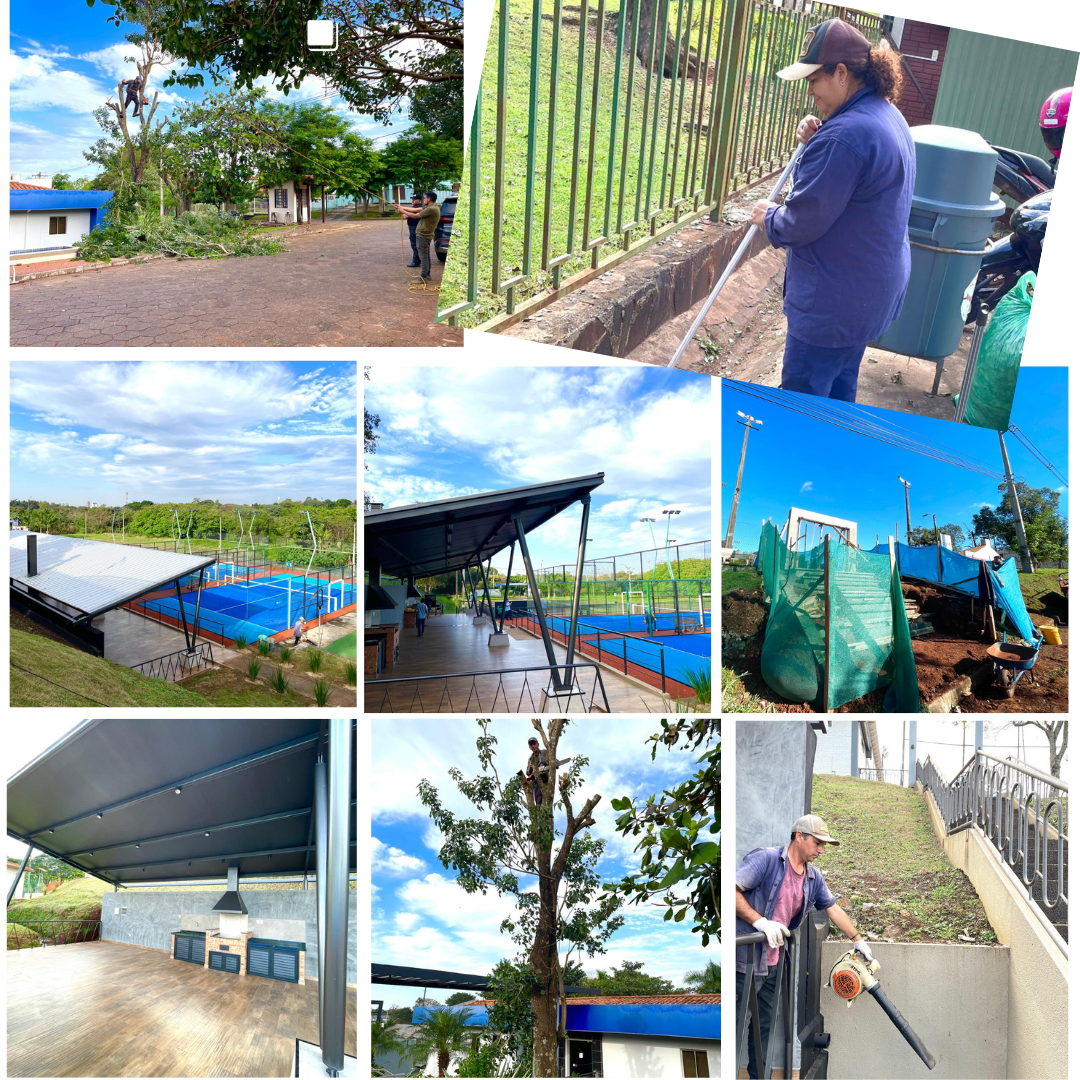 Las tareas consisten en limpieza, poda de árboles, aireación, recolocación de plantas faltantes, además del cambio de piedras dañadas, ornamentación y paisajismo. La Junta Directiva pone énfasis en la adecuación de la arquitectura, embellecimiento y cuidado de la naturaleza, para mayor disfrute, recreación y esparcimiento, sumado a la estética visual del predio del complejo social.